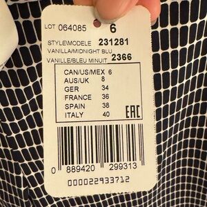 JOSEPH RIBKOFF NAVY & WHITE GRADIENT PANT Product # 231281 | Size 6. *New with tags. 37 inches in length, 28 inch inseam. 76% viscose, 21% nylon, 3% spandex. Skinny style. Stretch fabric and elastic waist.