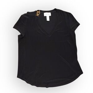 Style: V-neck Jersey Knit T-shirt w/ Gold Metal Accent Size: Womens 12