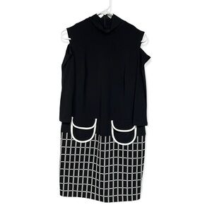 JOSEPH Ribkoff Cold Shoulder Geometric Check Black White Sheath Mini Dress, 8