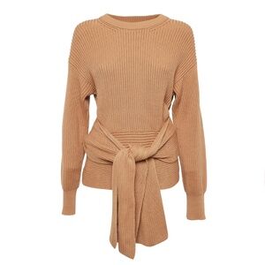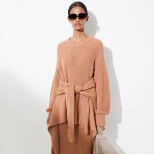 Sweater Cotton Ribbed Waist ties Side slits Slips on Mid-weight knit Machine wash or dry clean Made in Italy