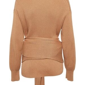 JOSEPH Tie-Front Ribbed Cotton Sweater