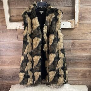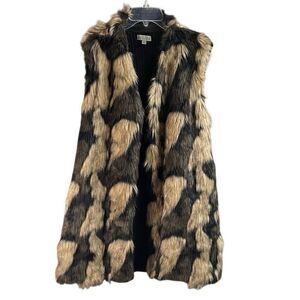 JOSEPH A Women’s Plus Size Faux-Fur Open-Front Vest Cardigan XL Black Tan