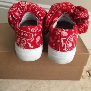 JOSHUA SANDERS Wool Felt Sneakers with large tied bow Size 8 red bandana print
