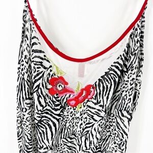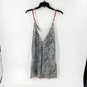 ✅ JOSIE BY NATORI BLACK/WHITE ZEBRA PRINT AND RED FLORAL SLIP GOWN SIZE X-LARGE