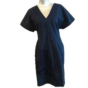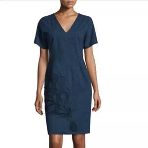 JOSIE NATORI INDIGO DRESS SIZE 8 with blue embroidery