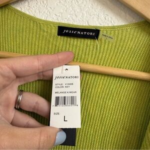 JOSIE NATORI Melange Knit Silk & Cotton Pullover in Key Lime Size L BNWT