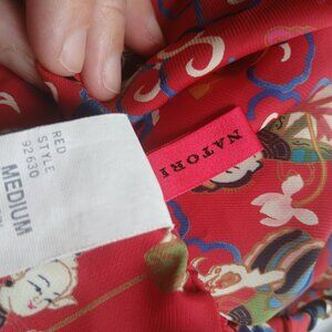 -Josie Natori Red Geisha Tea Garden Printed Crop pants Pajama.