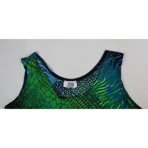 JOSTAR - WOMEN'S GREEN & BLUE PRINT SLINKY TEXTURED TUNIC TANK TOP - SIZE M