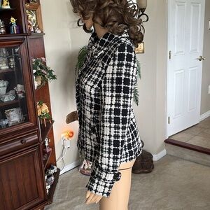 JOU JOU Lux Black & White Tweed Wool Blend Cropped Pea Coat Button Up Jacket