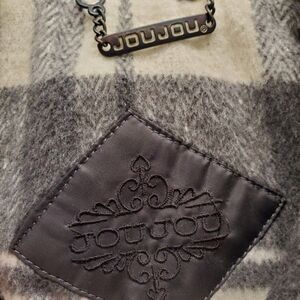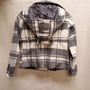 Gently loved JOUJOU brand hooded jacket in Girls Size Small. Gray and white plaid design.
