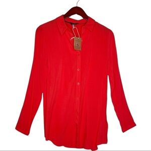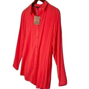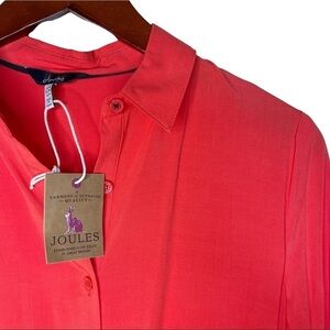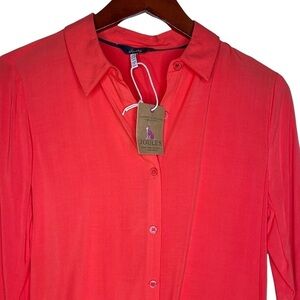 Brand New Button Front “Elvina” Shirt from Joules. This Top features a button front style with a fold down office collar. Lightweight in 100% Viscose. Color is Poppy and is a bit softer than what appears in photos. Longer length hem fit. Long sleeve with a single button cuff. Lloose, casual style. Woman’s Size 4