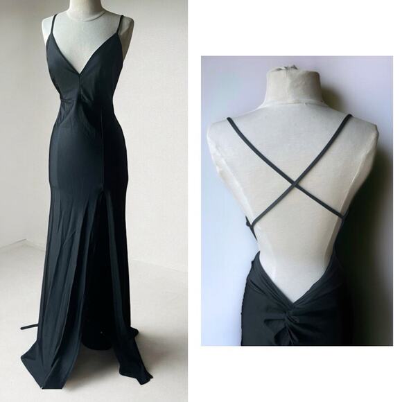 J.OUR Elegant Maxi Dress L Open Back Slit Gown Minimalist Formal Prom Gala Cocktail Wedding Guest Date Night Ballroom dance Special Occasion