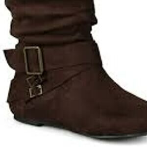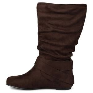 Express your style this season in flat buckle boots by Journee Collection. These fashionable wide-calf boots feature premium faux suede uppers that rise mid-calf and have an extra-roomy design to create a wide-calf style. They will give you that finishing touch that will have your outfit looking straight out of a magazine.