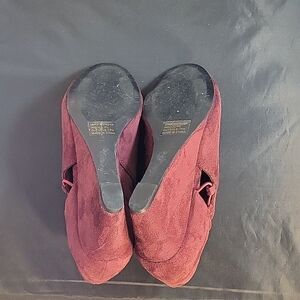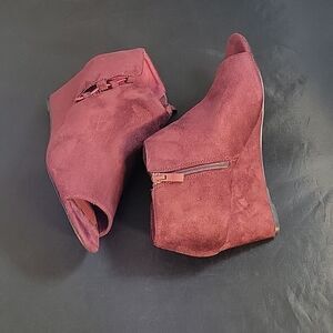 JOURNEE COLLECTION SUEDE CUT-OUT OPEN TOE WOMEN'S WEDGE HEELS SHOES SIZE 71/2 COLOR BURGUNDY MADE WITH UPPER POLYESTER INSOLE PU OUTSOLE TRP HEEL HEIGHT MEASUREMENTS APPROX 2.25"INCHES THIS ITEMS IS PRE-OWNED EXCELLENT CONDITION WITH ONLY LIGHT SIGNS OF WEAR IF ANY CHECK THE PICTURES