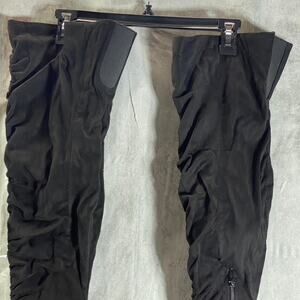 JOURNEE COLLECTION Women's Wide Calf Black Ruched Fantasia Pointed-Toe Over-The-Knee Stiletto Boots SZ 8