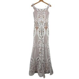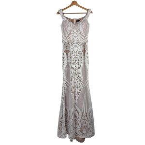 JOVANI 64277 OFF WHITE SEQUIN DECO SWEETHEART FITTED TRUMPET EVENING GOWN DRESS