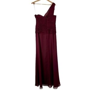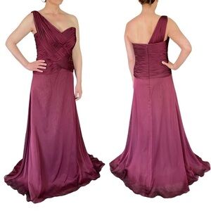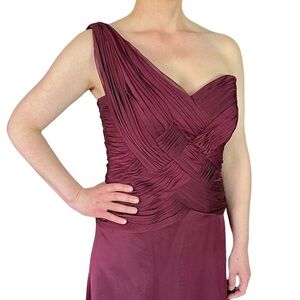JOVANI BASKETWEAVE ONE SHOULDER WINE RED RUCHED DRAPED FORMAL EVENING GOWN