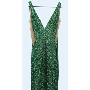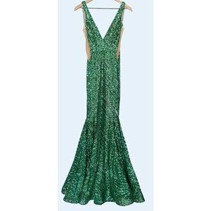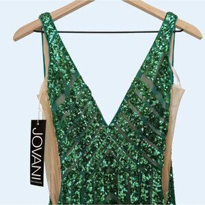 JOVANI Emerald Green Sequin V Neck Side Cut Out Prom Dress Sz 00 NEW