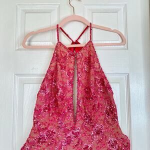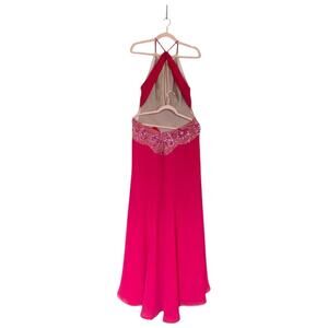 JOVANI Hot Pink Sequin Halter Evening Gown Formal Size 12 Leg Slit Sexy Prom
