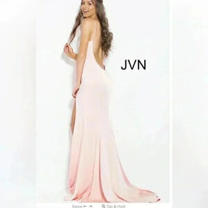 #Jovani #JVNbyJovani #FormalDress #PromDress #EveningGown #BlushPink #HighSlit #OpenBack