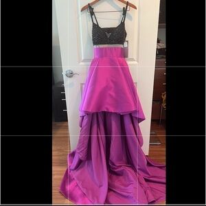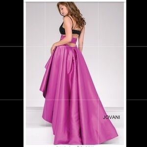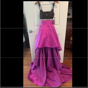 Two Piece High Low Black and fuchsia Prom Dress 47862