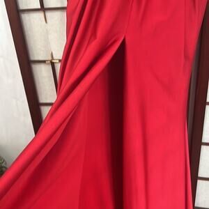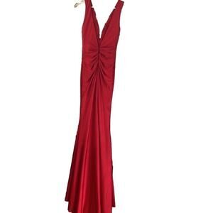 JOVANI MERMAID RED TWIST WAIST PLUNGING NECK LINE MAXI DRESS 4