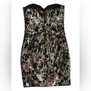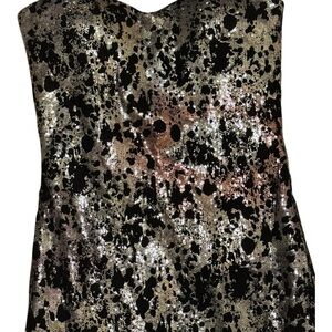JOVANI Strapless Sequins Velvet Dress Silver Black Pink Size 2 Mini Formal Party
