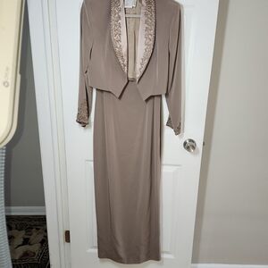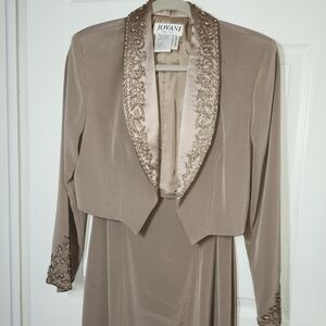 JOVANI Taupe Dress with beaded trim on gown and Jacket