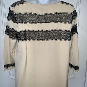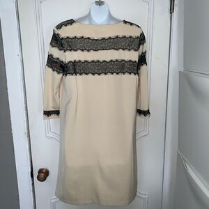 Beige with black lace polyester Shift Dress,3/4 Sleeve, NWT. Lined. Washable. US Size 12 (UK 14)