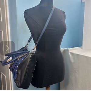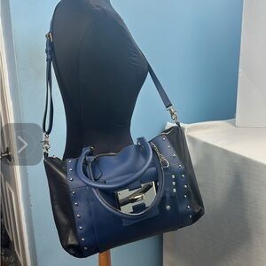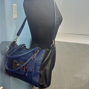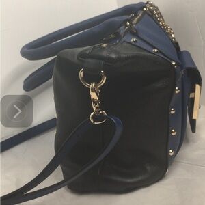 JOY GRYSON BLUE/BLACK LEATHER COLOR BLOCK LARGE SATCHEL/ TOTE