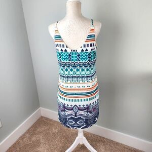 JOY JOY WOMEN'S PULL OVER SPAGETTI STRAPS AZTEC PRINT LINED DRESS SIZE SMALL