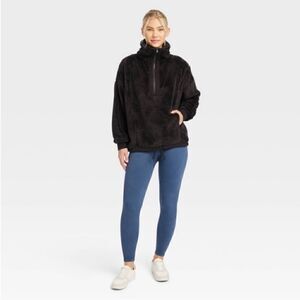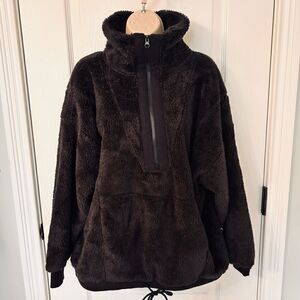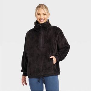 JOY LAB Soft & Cozy 1/4 Zip Black Fleece Drawstring Bottom Pullover!
