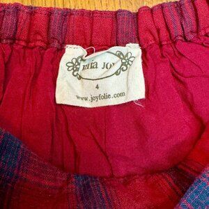 JOYFOLIE Mia Joy Boho Plaid Skirt Girls 4 4T Asymmetric Ruffle Hem Red/Blue Girl