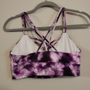JOY LAB PURPLE AND WHITE TIE DYE STRAPPY SPORTS BRA SIZE S