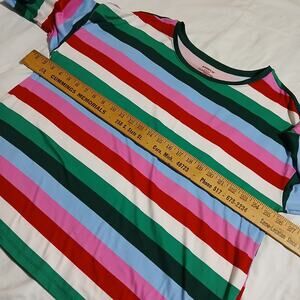 This set is in excellent condition and features a stylish striped pattern in pink, green, blue, and white.