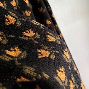 This vintage tulip sweater by JP Collections is a cozy standout in bold mustard and black tones. With a striking floral knit and bohemian flair, it’s perfect for cool-weather styling with jeans or trousers.