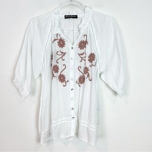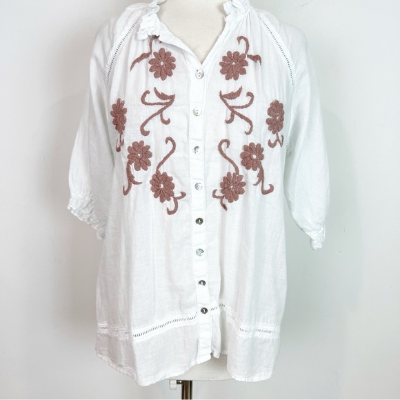 JP & MATTIE EASY ESSENCE WHITE EMBROIDERED SHORT SLEEVE BOHO BLOUSE WOMENS LARGE