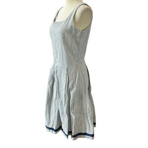 JP & MATTIE SEERSUCKER COTTON SUNDRESS M STRIPES FIT & FLARE PLEATED 50’S-ESQUE