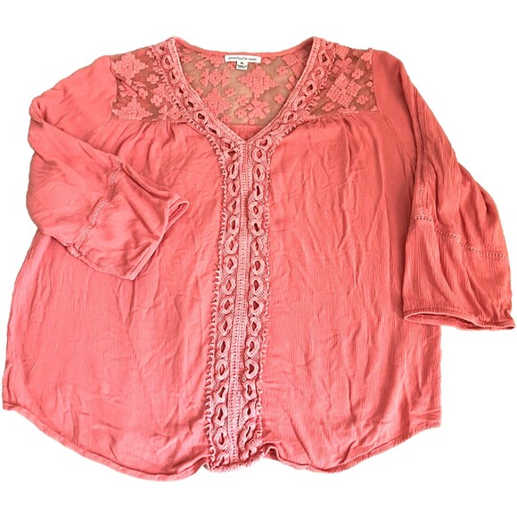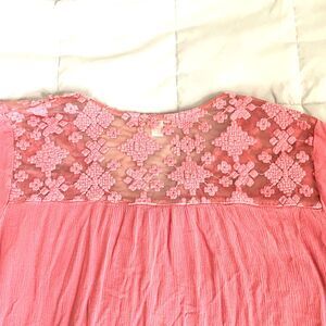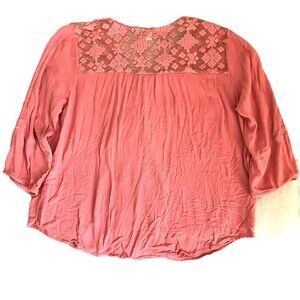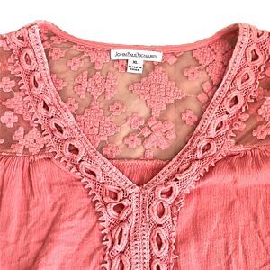 JP Richard Crochet Tunic Top Embroidered Pink Gauze Flowy XL Peasant Cottage Y2K