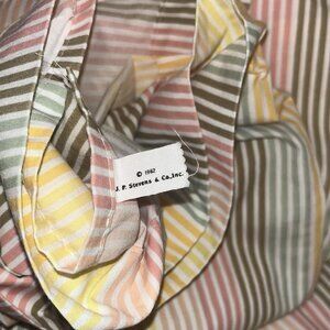 JP Stevens & Co Colorful Striped Queen Flat (Top) Sheet Multicolor Summer Vibe This is perfect for a beach cottage or modern shore house. Care tag is faded. Light wear and a few marks that look like ink.