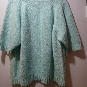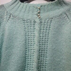 JP Vintage Aqua Blue Sweater. Size 22/24. Short Sleeves Pearl looking buttons at the neck.