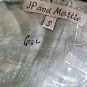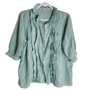JP and Mattie Button Up Peasant Blouse Women's Small S Green Ruffle Boho Cotton