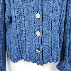 JP Berringer Blue Sweater Crop M Vintage 90s Open Knit Silver Buttons