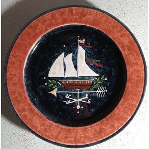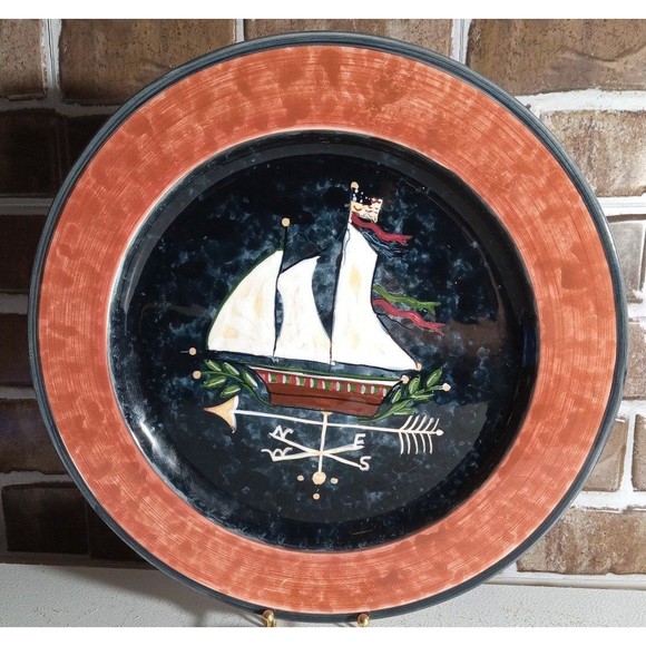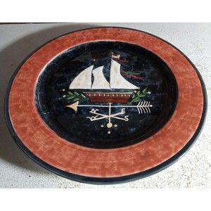 JPC Home Collection Large Serving/Cake Plate 13"Susan Winget Compass Sailboat