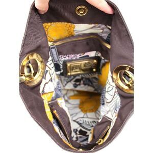 JPK PARIS 75 BROWN NYLON BROWN GENUINE LEATHER STRAP SHOULDER BAG HANDBAG PURSE