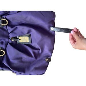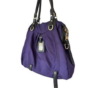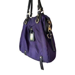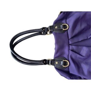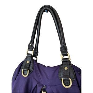 JPK Womens Purple Gold Tone Nylon Top Zip Closure Leather Double Handle Handbag