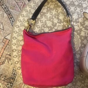 HOT Pink Coated Canvas Gold hardware with logo Flowered interior Preowned