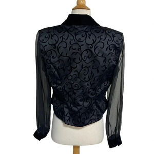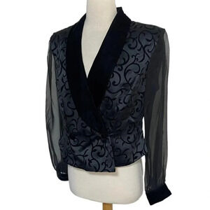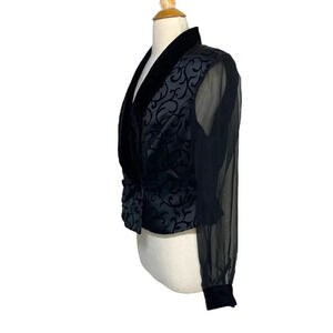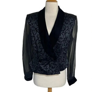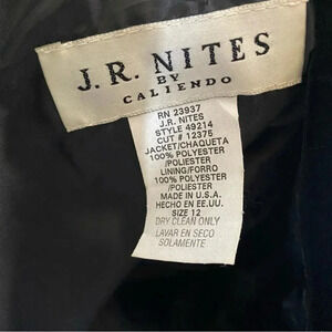J.R. Nite by Caliendo 12 black velvet accent formal jacket top sheer sleeves