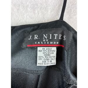 JR Nites Caliendo Black Satin Trim Y2K Spaghetti Strap Dress 33" Bust No Stretch