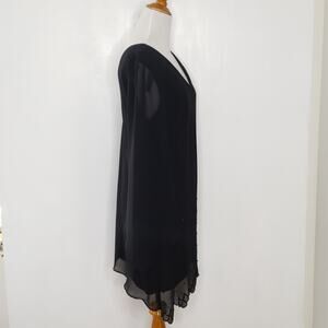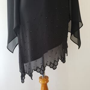 J.R. Nites by Caliendo Beaded Black Tunic Asymmetrical Hem V-Neck Women 10